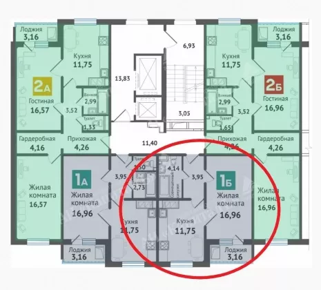 Жилая площадь16.96